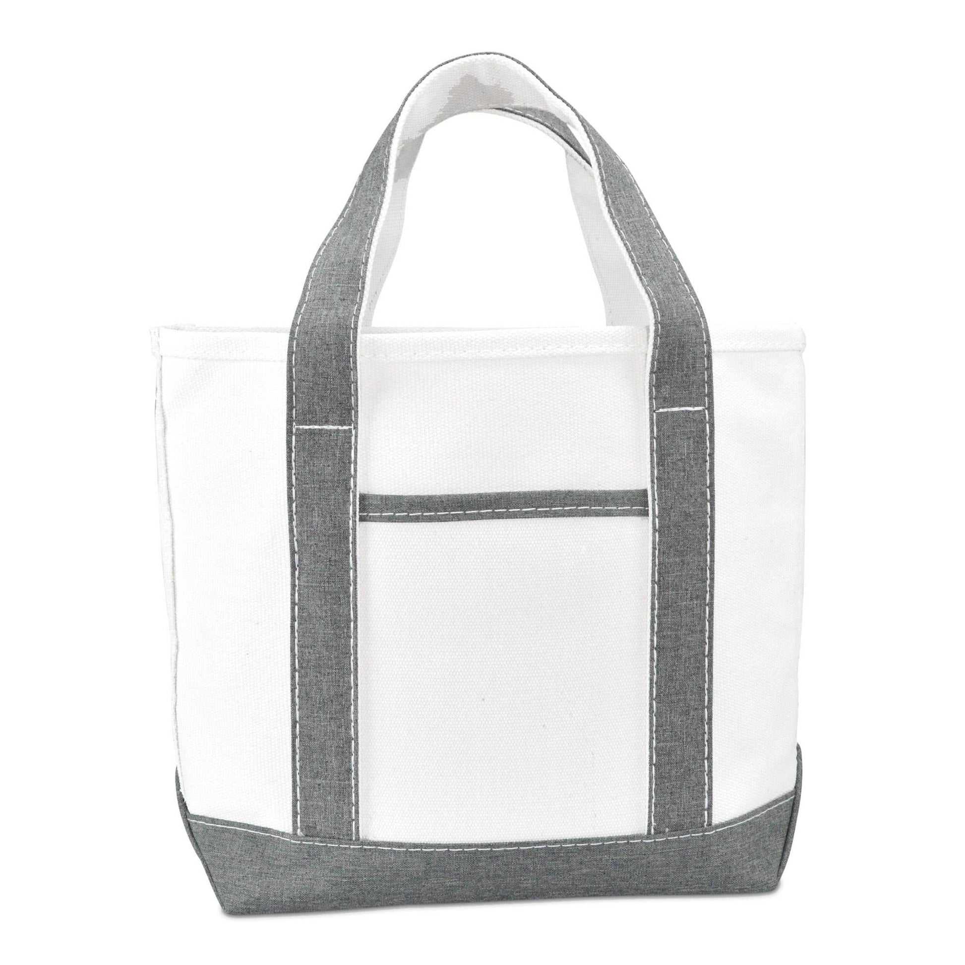 DALIX premium small tote bags are the perfect bags for wedding party favors and small children! This bag is made of high quality thick 24 oz. cotton canvas in a white hue with a two toned color scheme. FEATURES: Heavy Duty 24oz. Cotton Canvas Material, Two toned color, Expandable Gusset MATERIAL: 24 oz. Premium Cotton Canvas SIZE: 14 x 10 x 5.