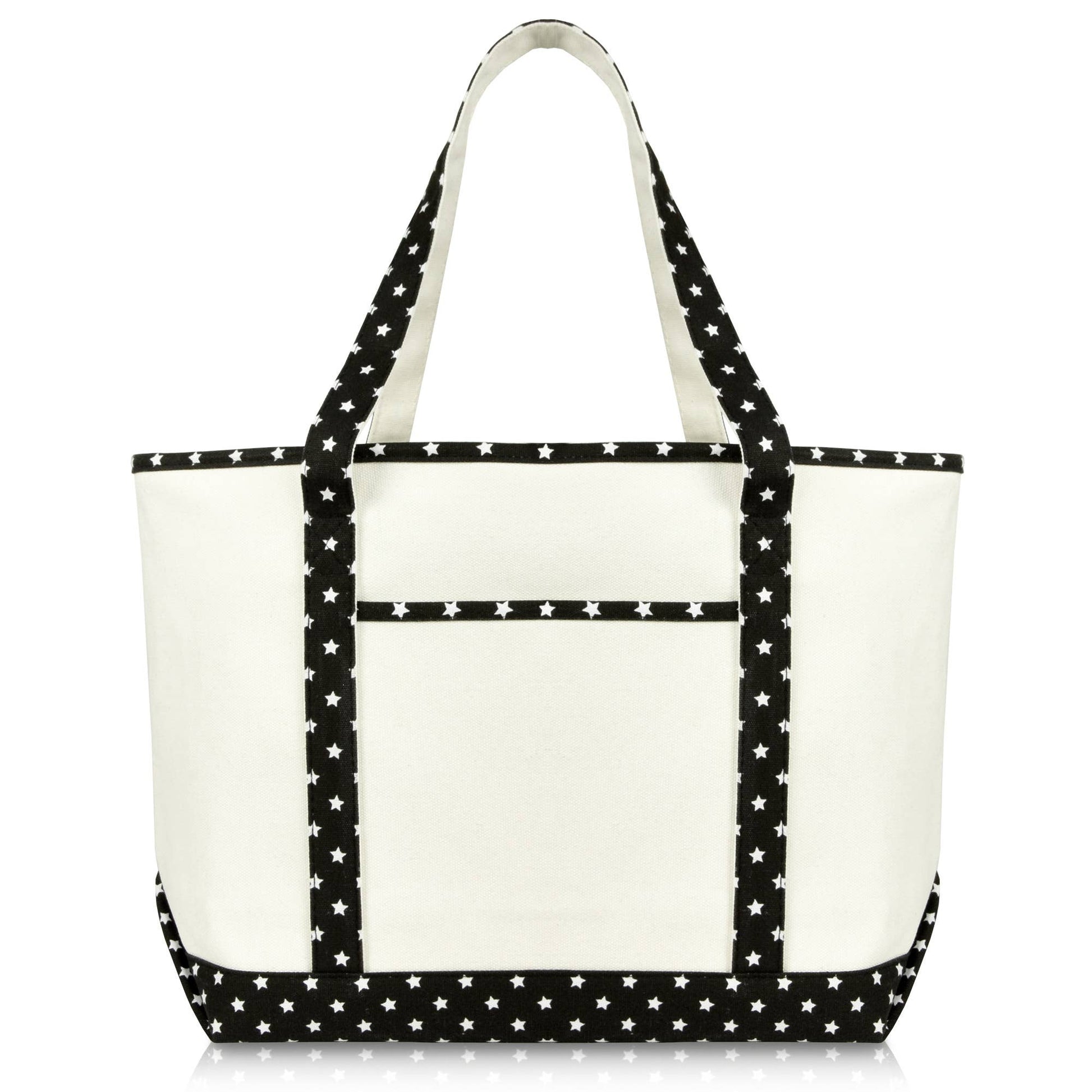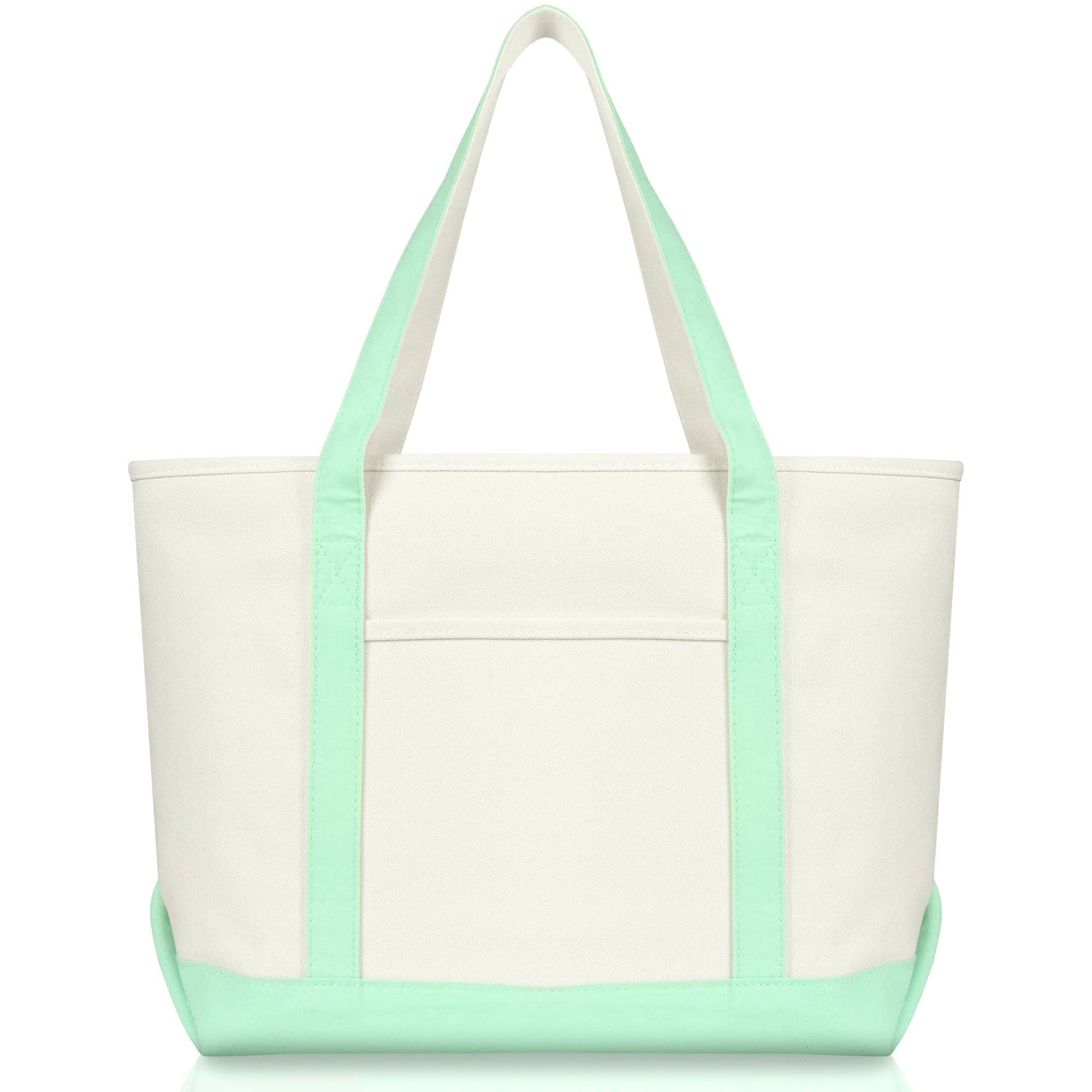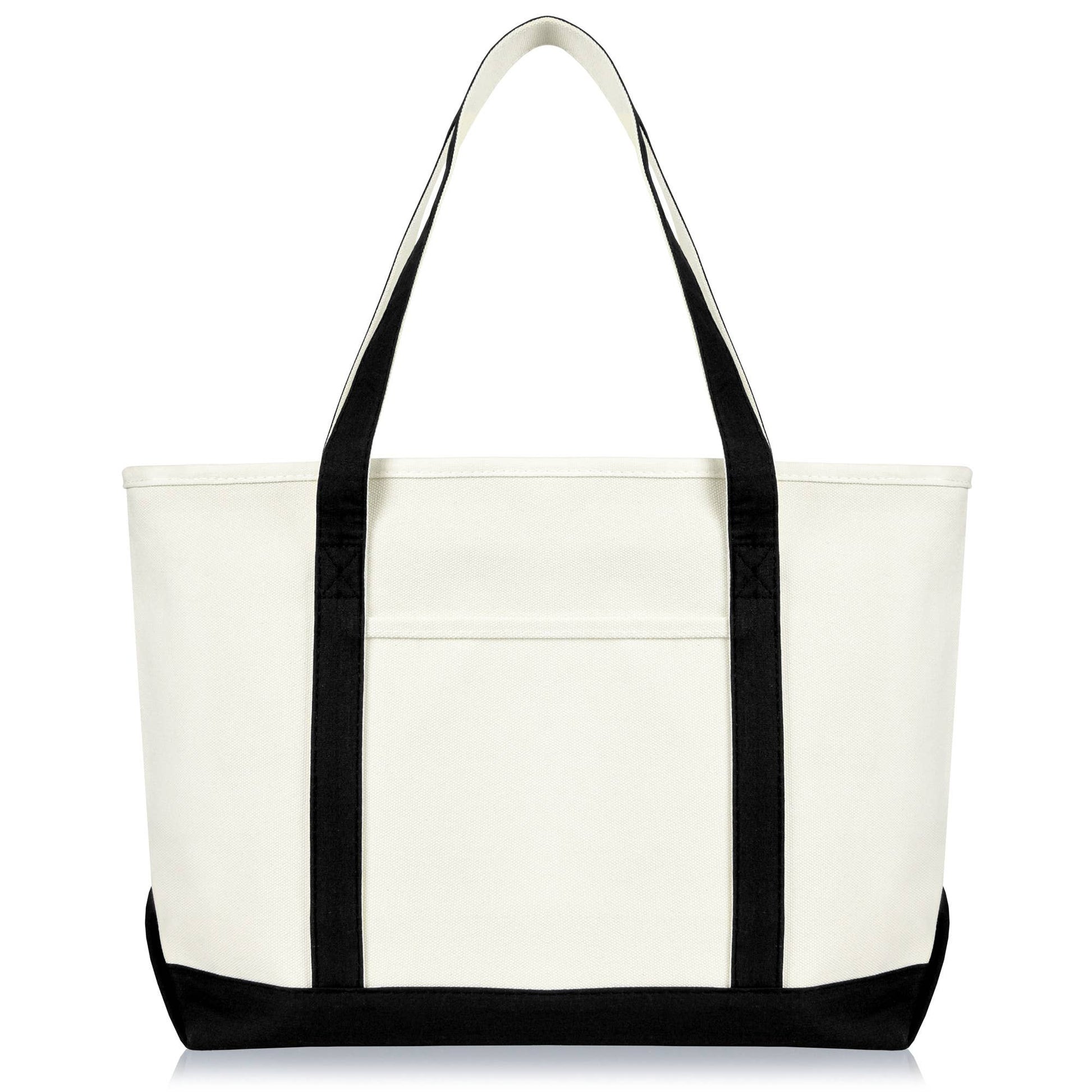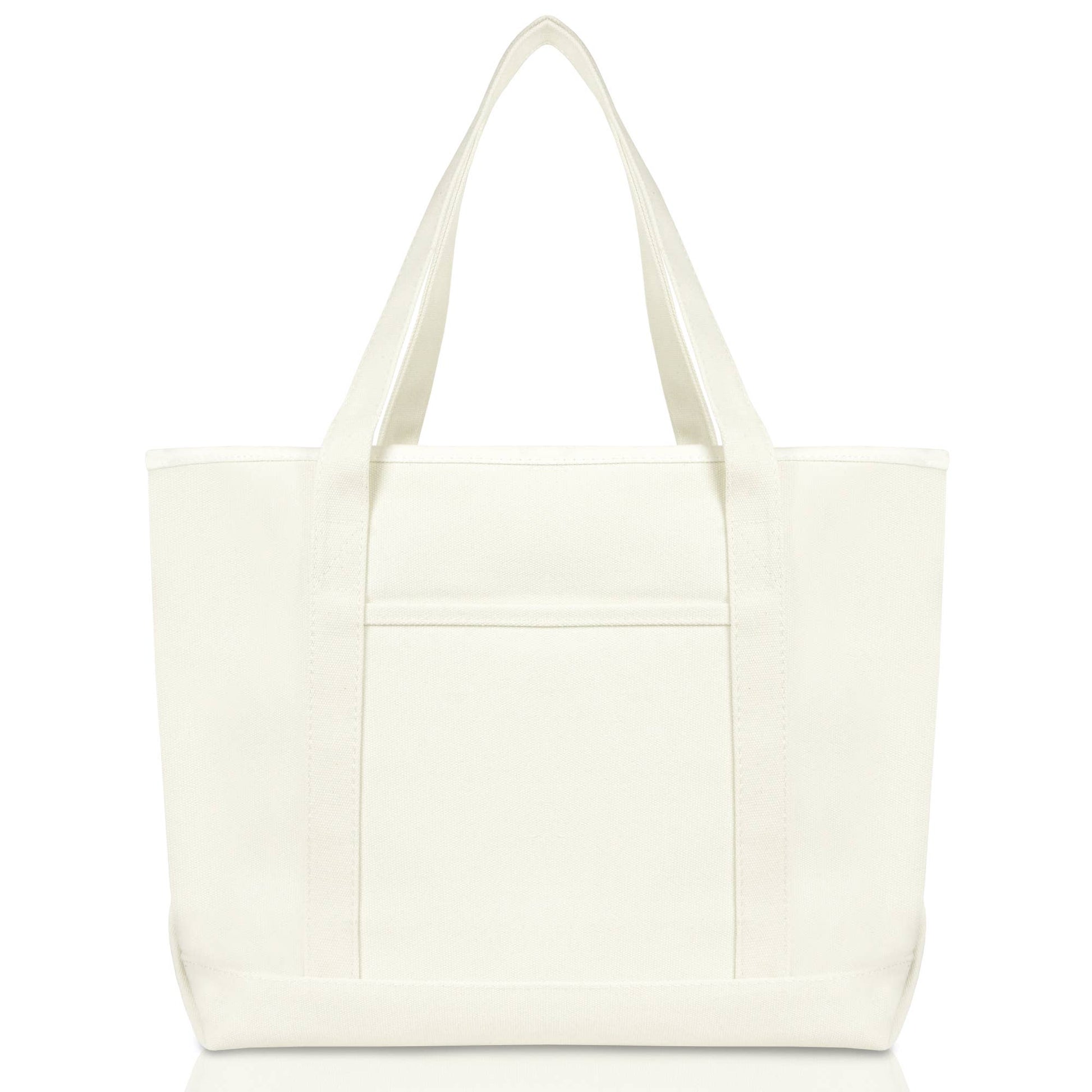 DALIX brings quality and convenience to complement your outings. Our Cotton Canvas tote is not only easy on the eyes, but it is also very durable with its 24 oz. quality material and stitching. In the main compartment is enclosed with a zipper to prevent your belongings from falling out or lost. Also features a front pocket for storage of smaller items, bottles, or accessories for easy access. FEATURES: 1 Outer Pocket, 11" Drop Handles, Zippered Top Closure. MATERIAL: DALIX Premium 24 oz. 100% Cotton Canvas. SIZE: 23" Length x 14" Width x 7" Depth.