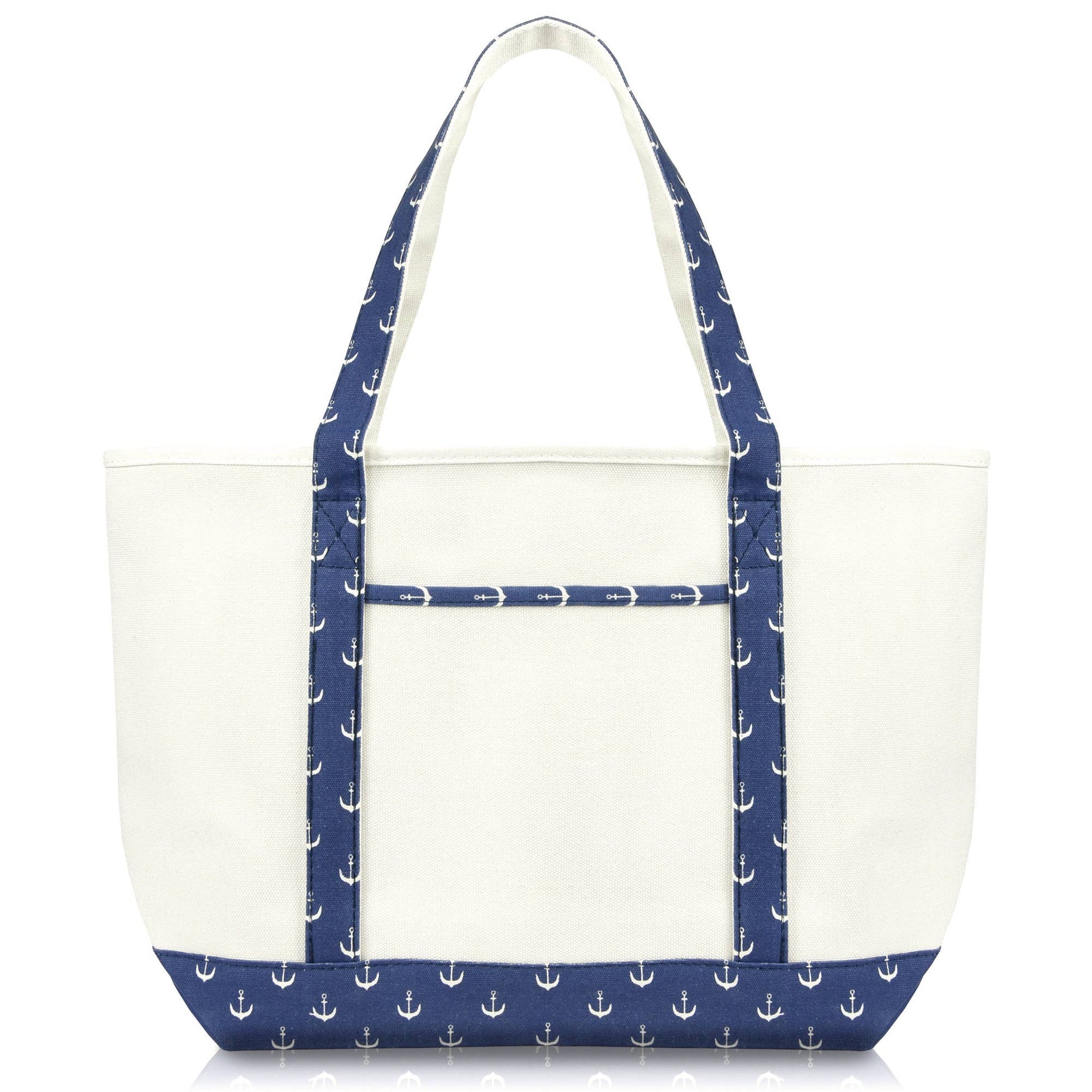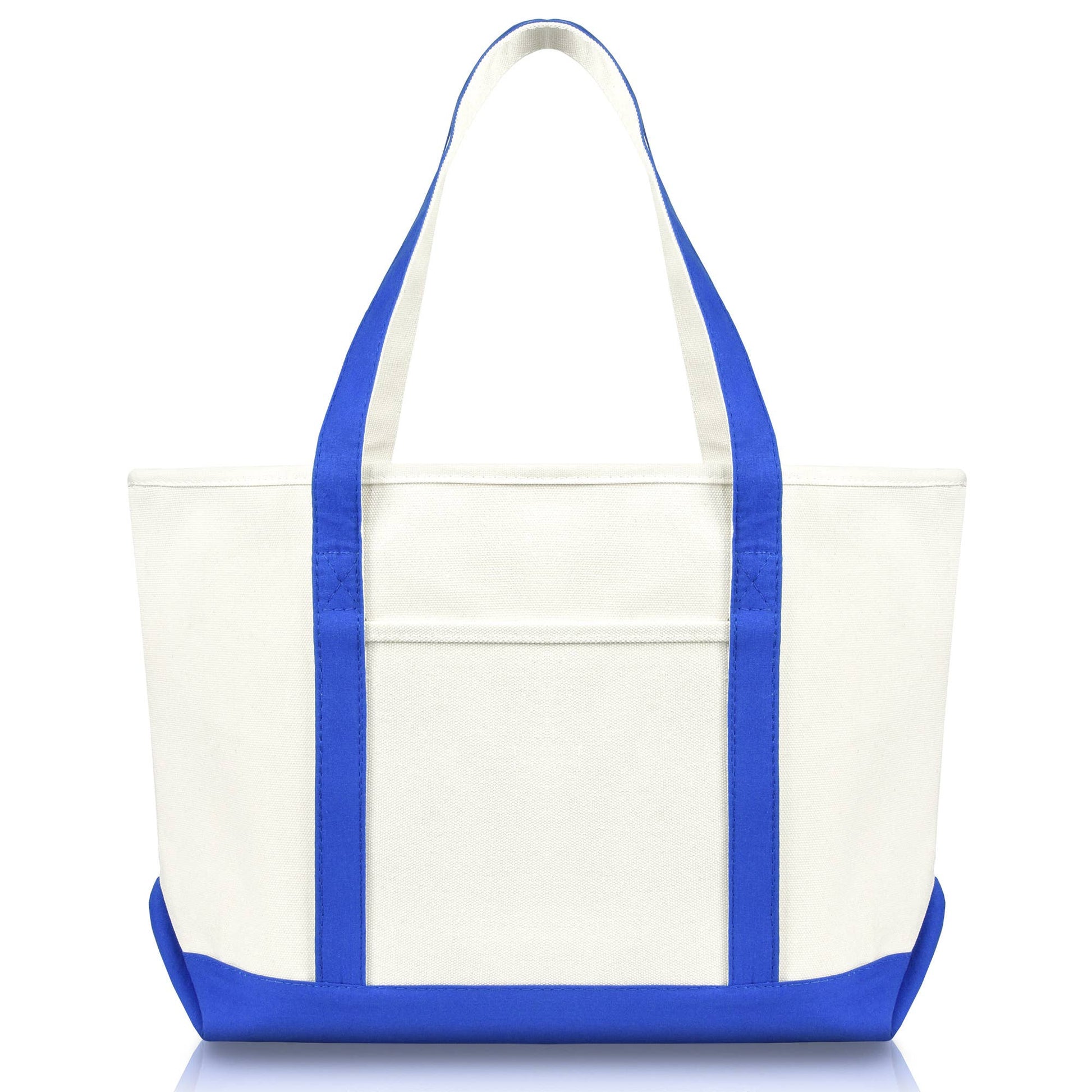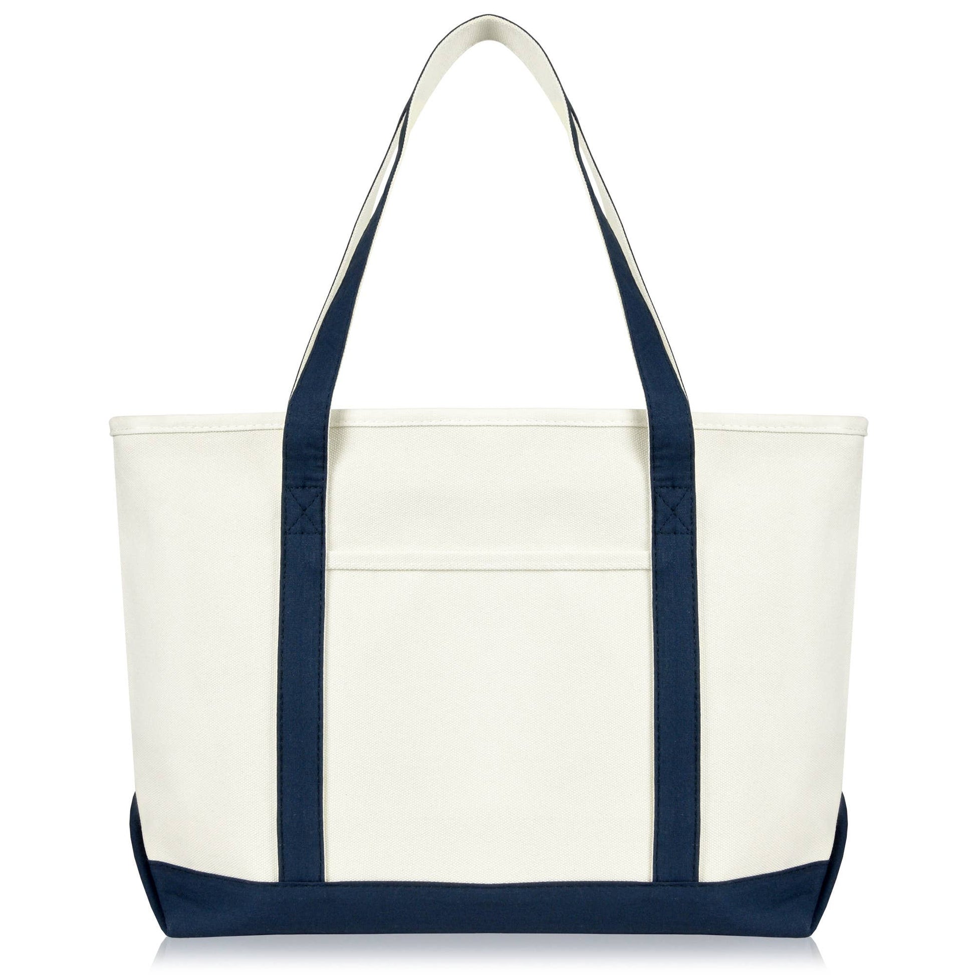 DALIX 23" Premium 24 oz. Cotton Canvas Shopping Tote Bag: Navy Blue