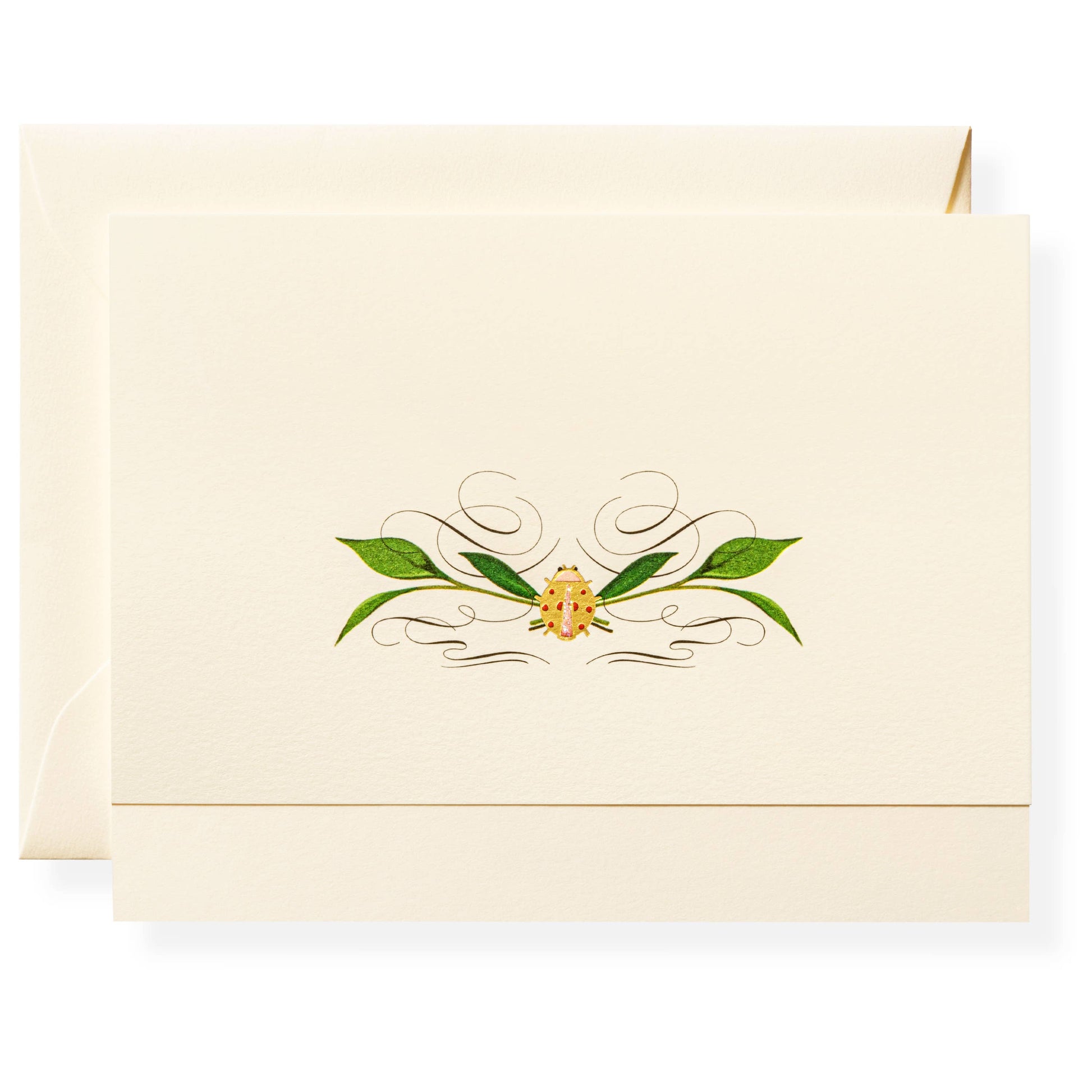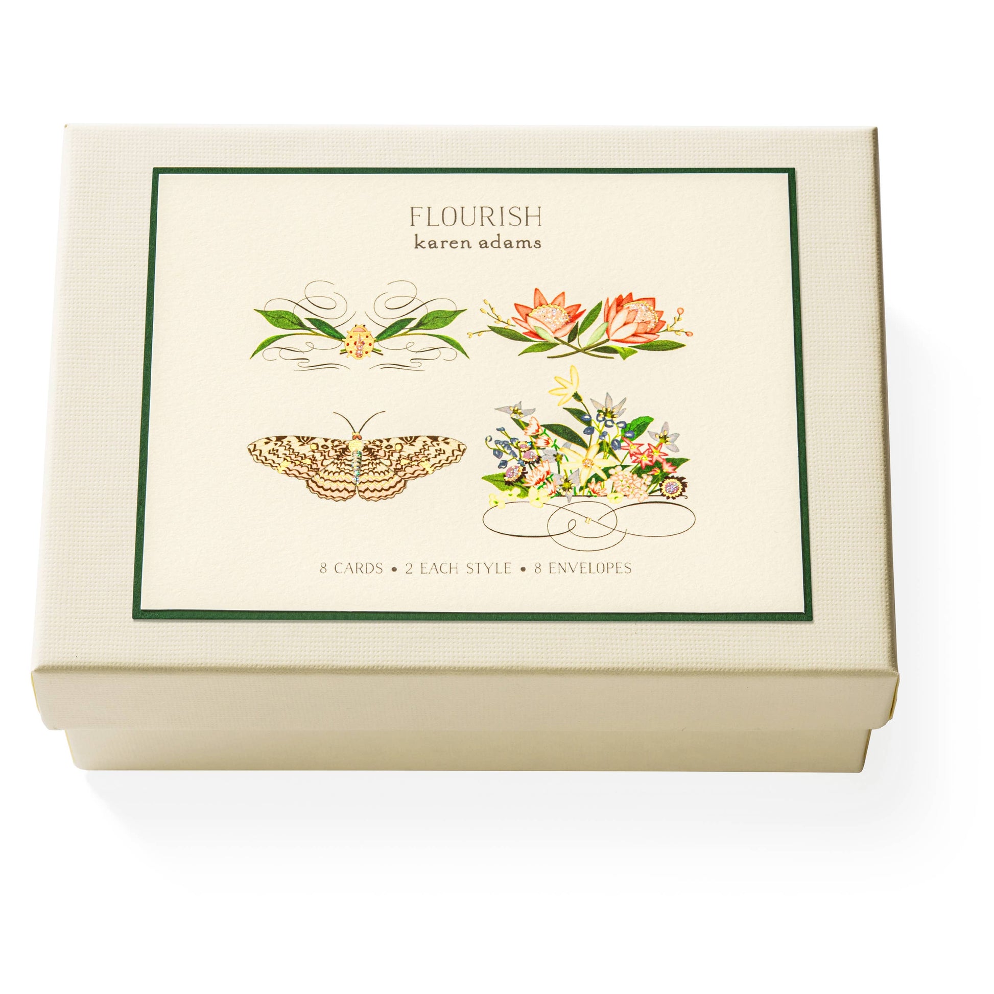 Celebrate the beautiful details! This set of eight natural white note cards includes four different designs—each elegantly hand-embellished. They make a delightful hostess or house-warming gift or even for your own hand-written notes. Top-folded cards, blank on the inside.