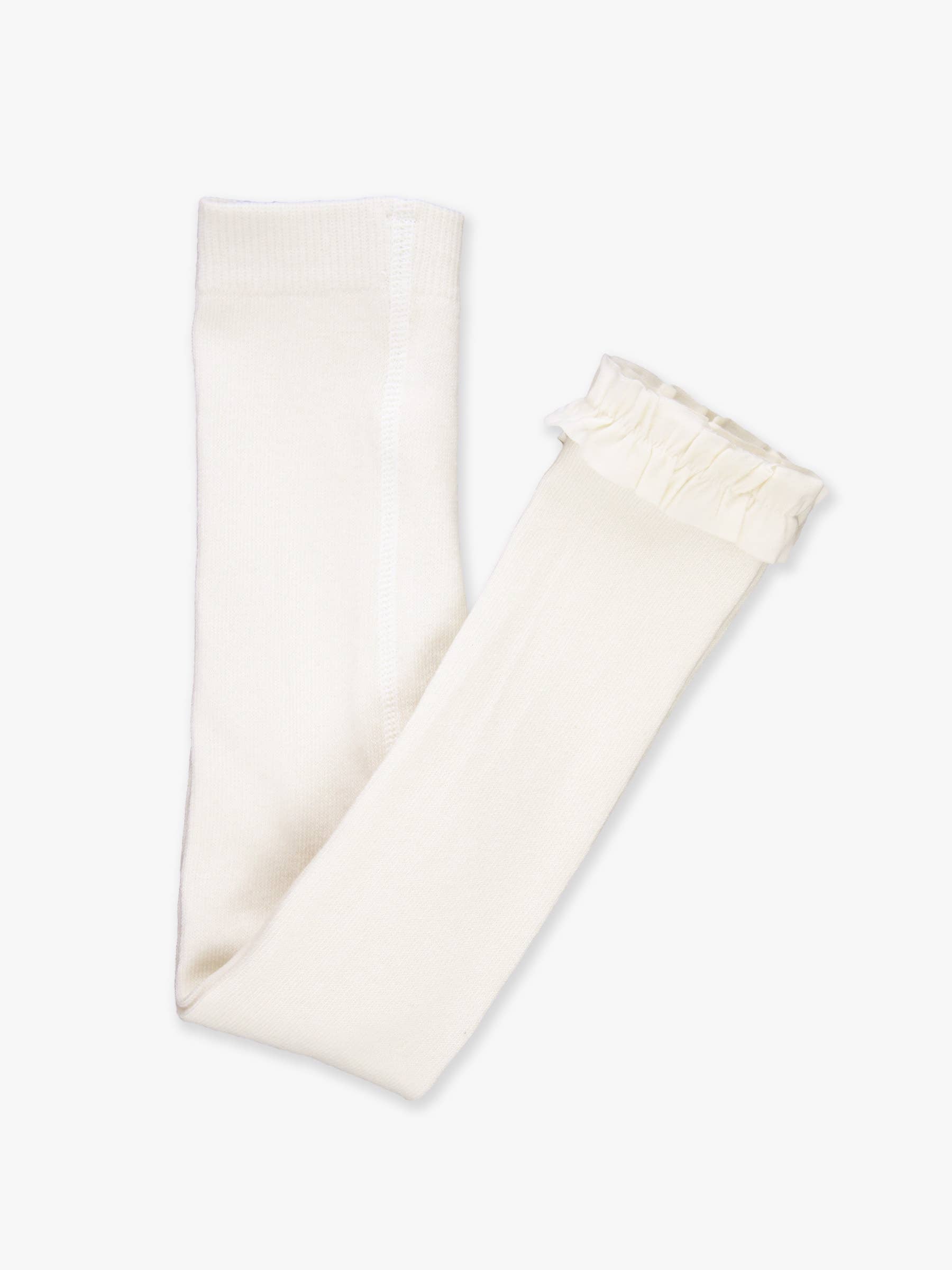 Girls Ivory Footless Ruffle Tights : Off-White / 12-24M