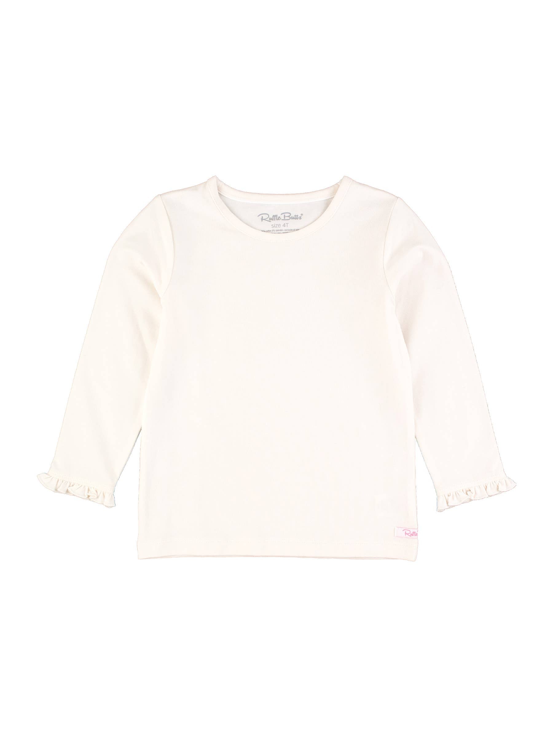 This darling top is crafted from soft, stretchy knit fabric and combines comfort and style effortlessly. With its charming ruffle detailing, long sleeves, and soft fabric, it offers both versatility and convenience, making it perfect for everyday wear or dressing up for special occasions. Great for layering! Available in a matching bodysuit style in baby sizes as well.