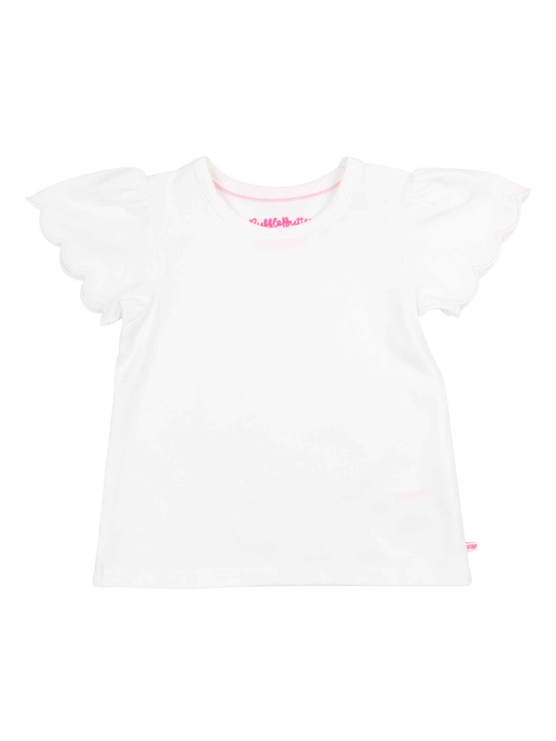 Girls White Knit Short Sleeve Scallop Tee : White / 18-24m