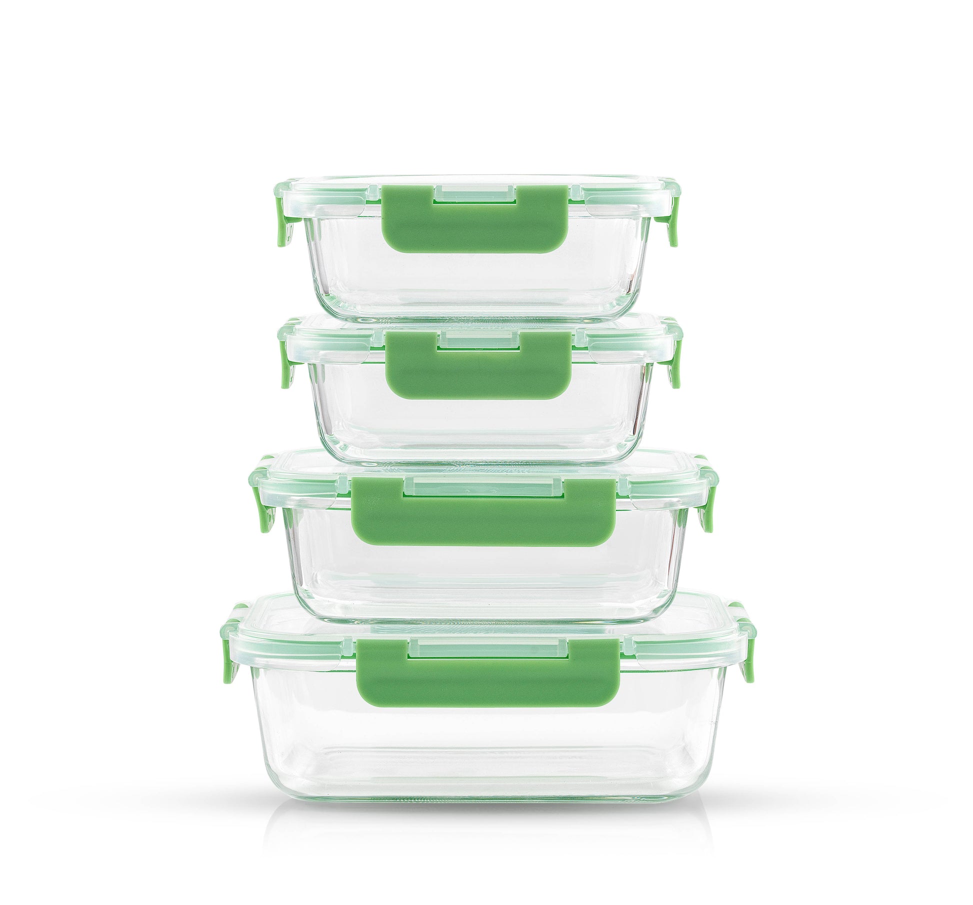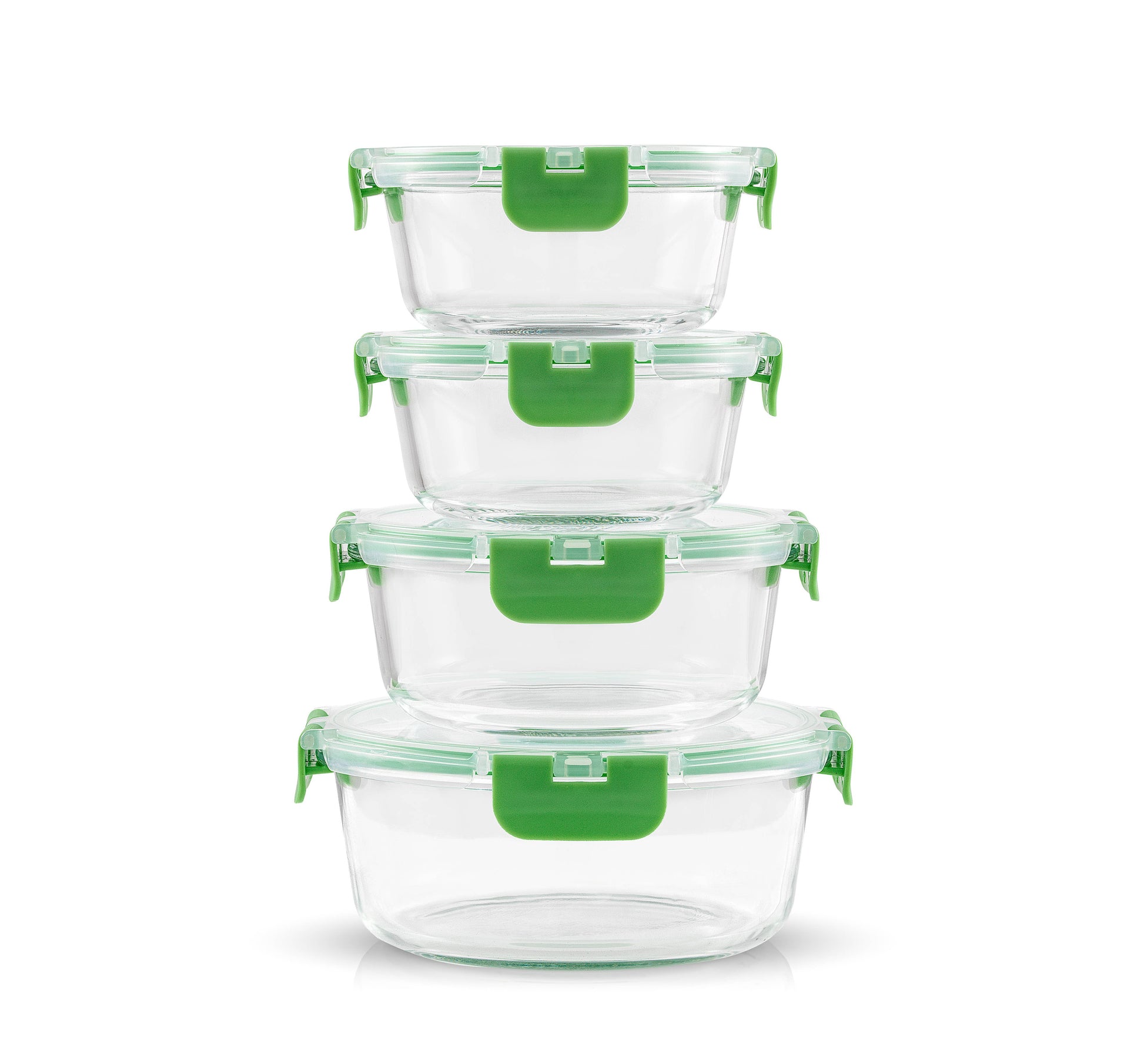 JoyFul 12 Glass Storage Containers With Green Leakproof Lids