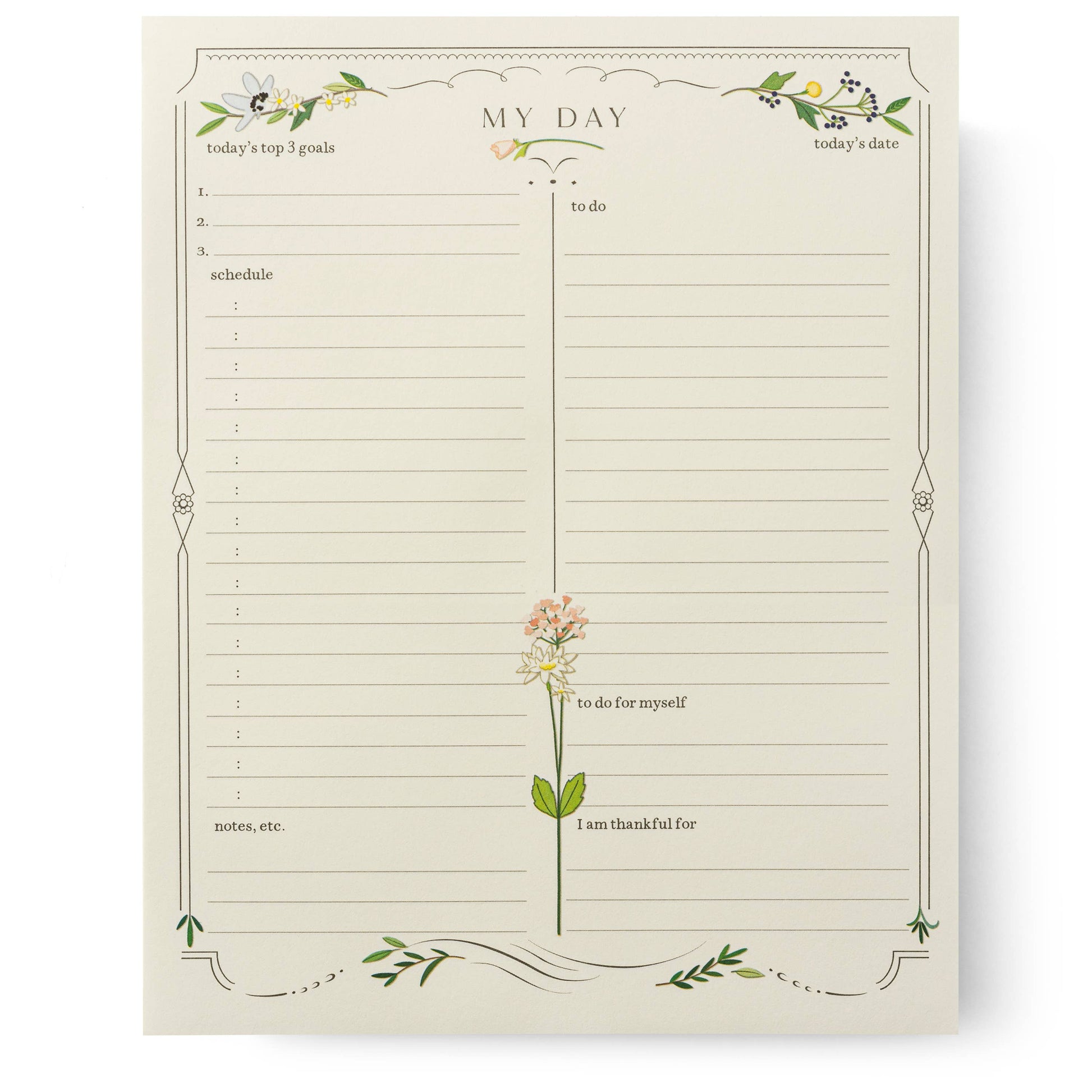 We like to write things down - goals, chores, lists, affirmations, groceries, etc. Chances are if you've clicked and scrolled this far, you might too! This organically themed pad we hope to encourage and appreciate the art of self-scheduling and organization. Take your time each day to smell the flower buds atop the header and flow through the rest!