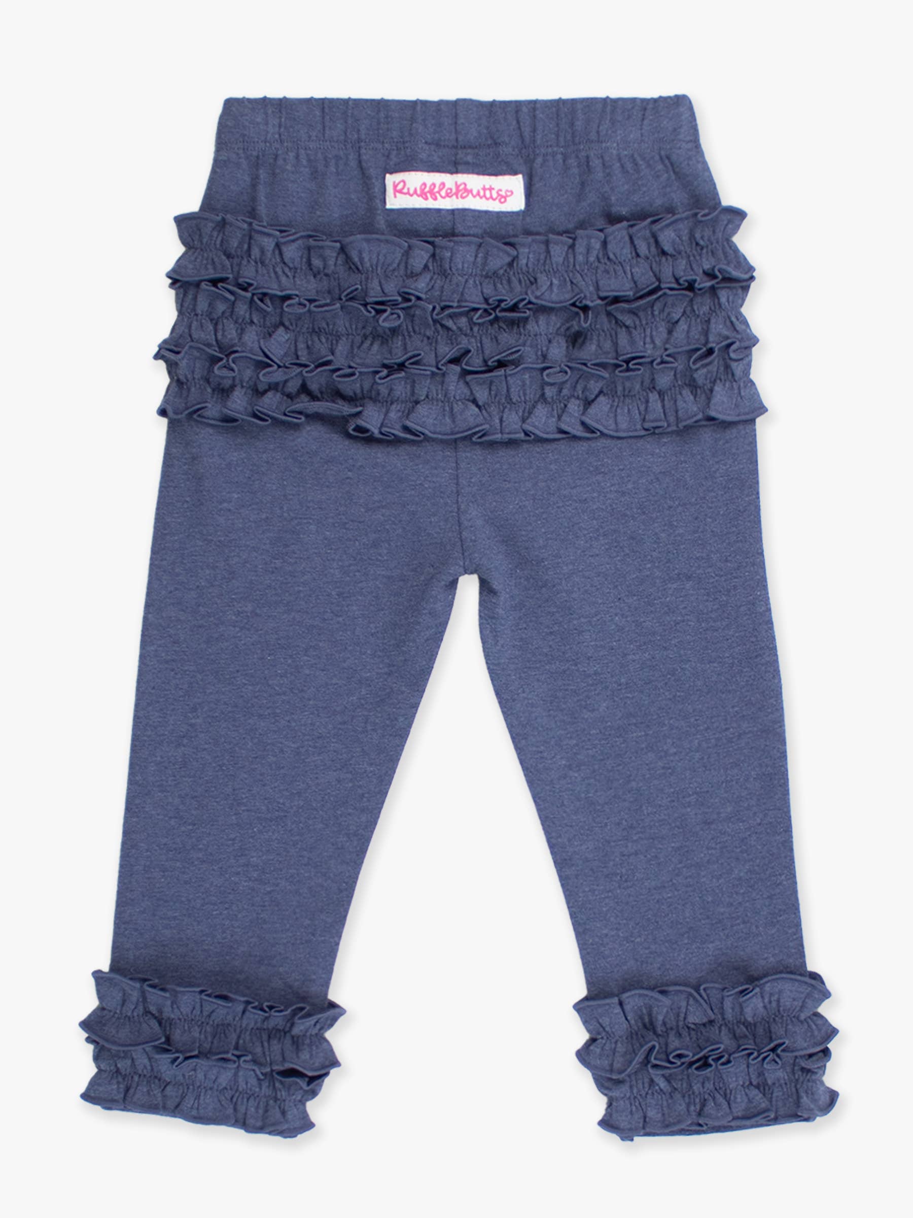Toddler Girls Faux Denim Classic Ruffle Leggings with Signature Rear Ruffles : Blue / 18-24m